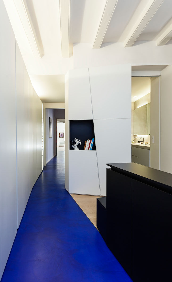 La vivienda está situada en un edificio histórico en el Barrio Gótico de Barcelona. En los últimos años, el espacio había sido destinado a oficinas. El proyecto le devuelve su uso original de vivienda, siguiendo la estructura de la planta muy claramente dividida en dos zonas: la mas "publica" hacía la calle Llibretería, destinada a la zona de día; la mas "privada" - separada mediante un pasillo/ galería - hacía el patio interior, destinada a la zona de descanso.