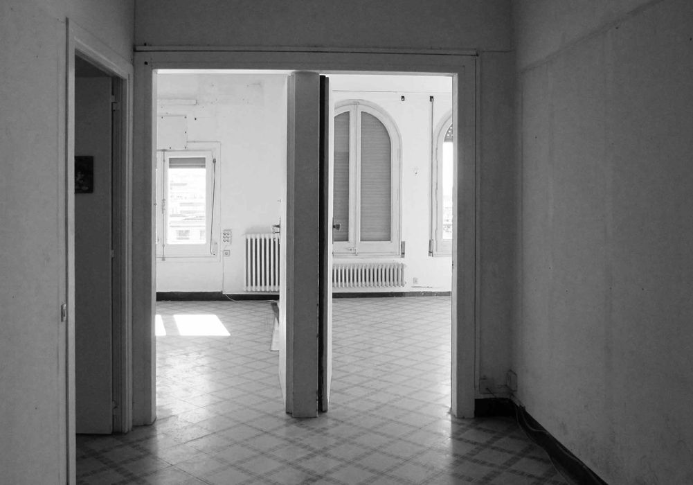 La vivienda está situada en la última planta de un edificio del año 1940 del Paseo Lluis Companys de Barcelona, en el límite entre Ciutat Vella y l’ Eixample. Las características de su distribución original son las de un piso alargado, con las estancias más amplias ubicadas en las dos fachadas principales y conectadas por un largo pasillo.